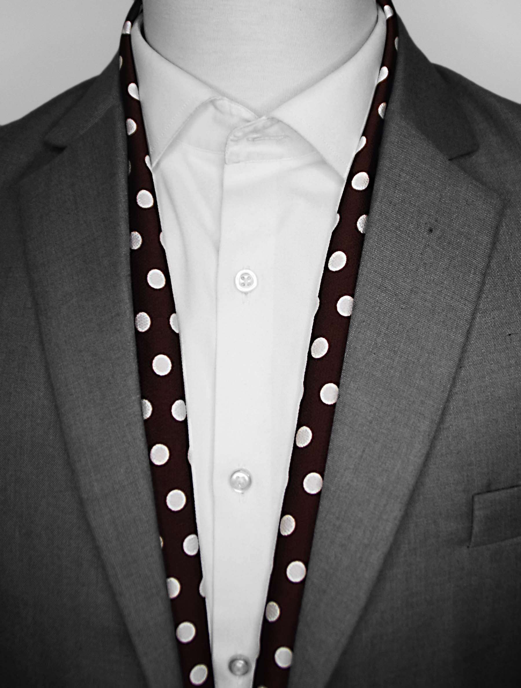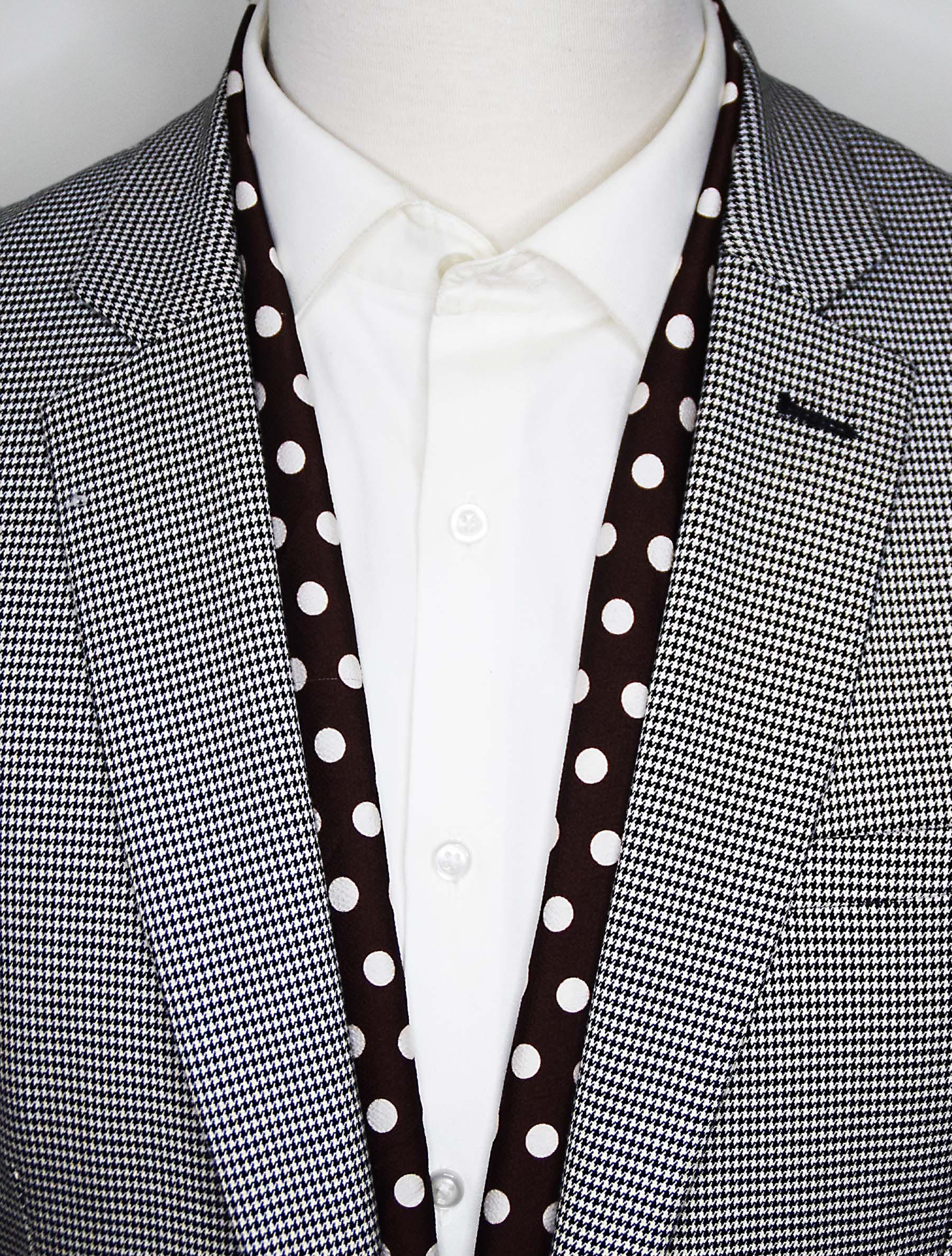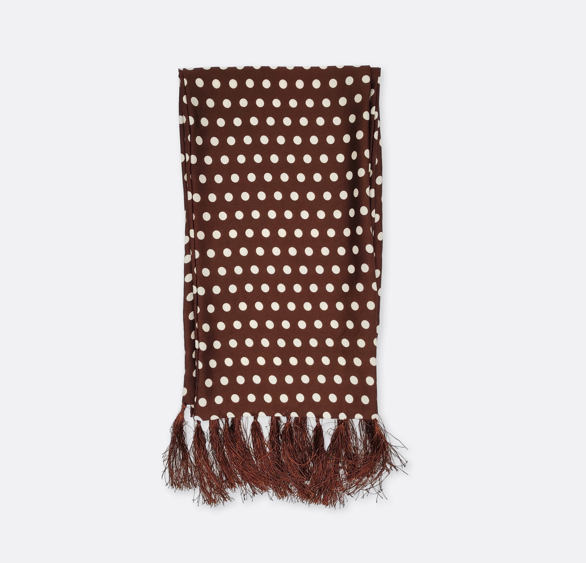Rich and dapper, this pure silk scarf features a deep coffee backdrop punctuated by crisp polka dots for classic charm. Smooth, lightweight, and elegant, it drapes effortlessly over tailoring or smart-casual layers. Ideal for weddings, evenings out, and sharp office days—pairs perfectly with navy, cream, tan, and charcoal.