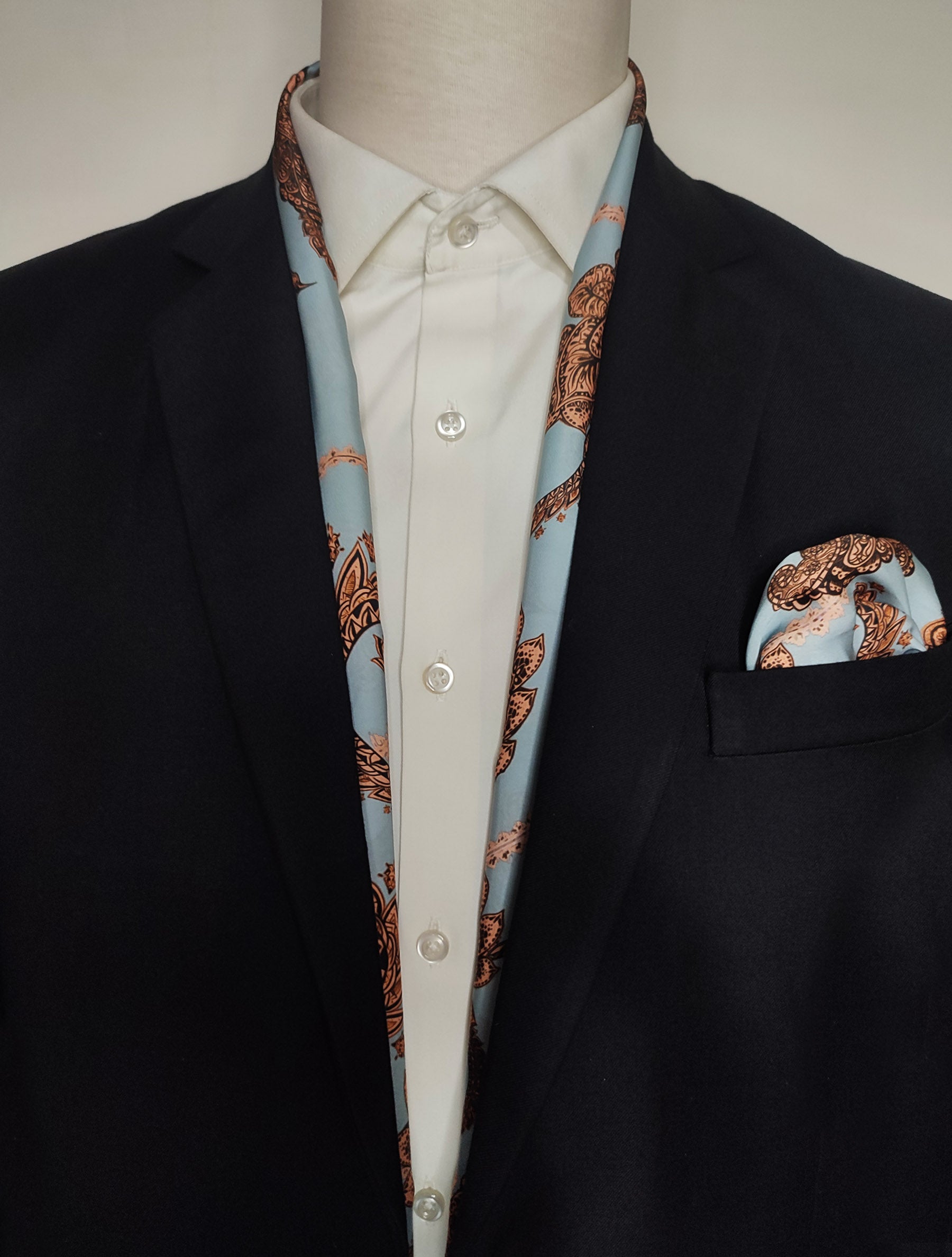 Grey Box Pleated - Silk Scarf and Pocket Square Set
