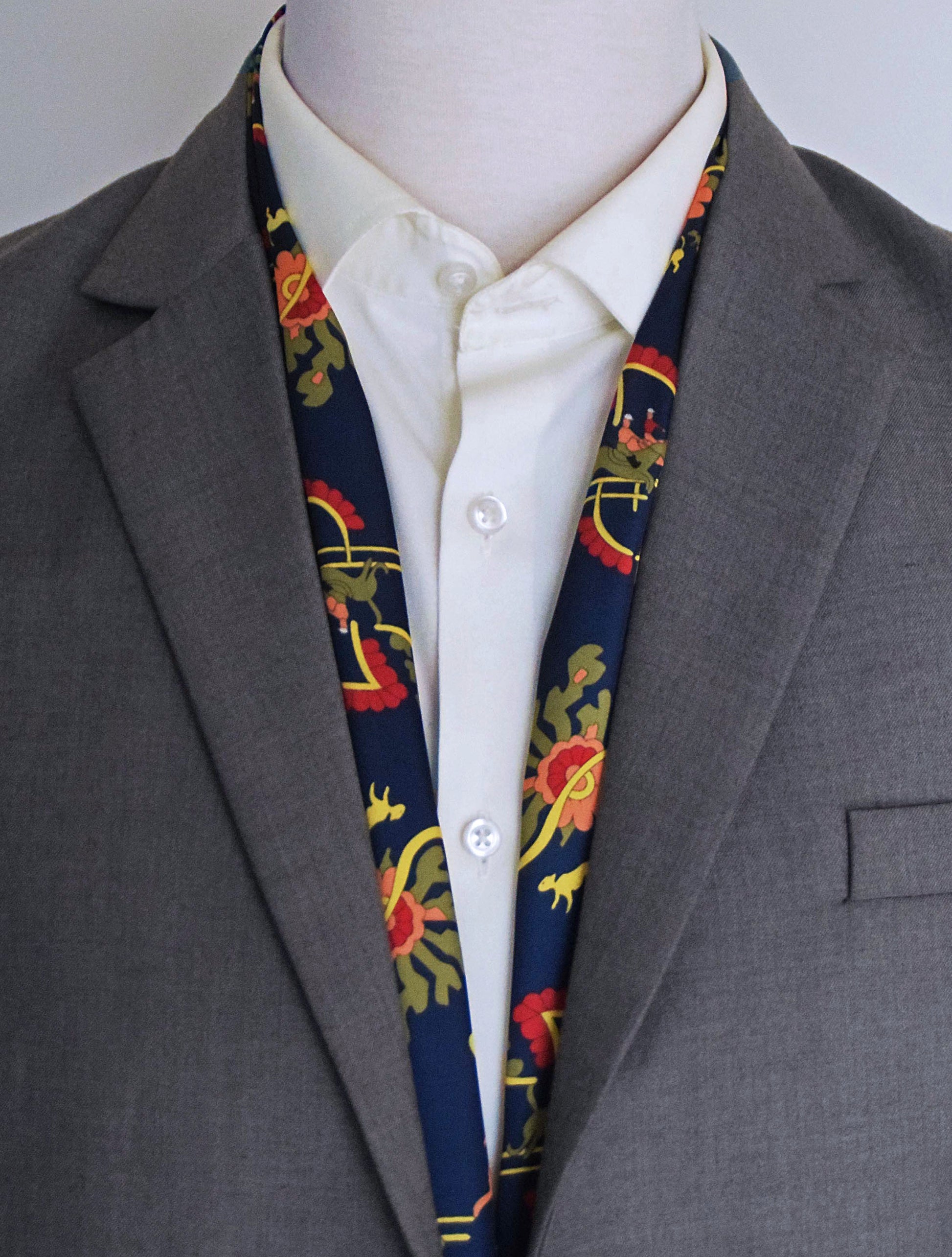 Navy Blue Paisley and Floral - Silk Men Scarf